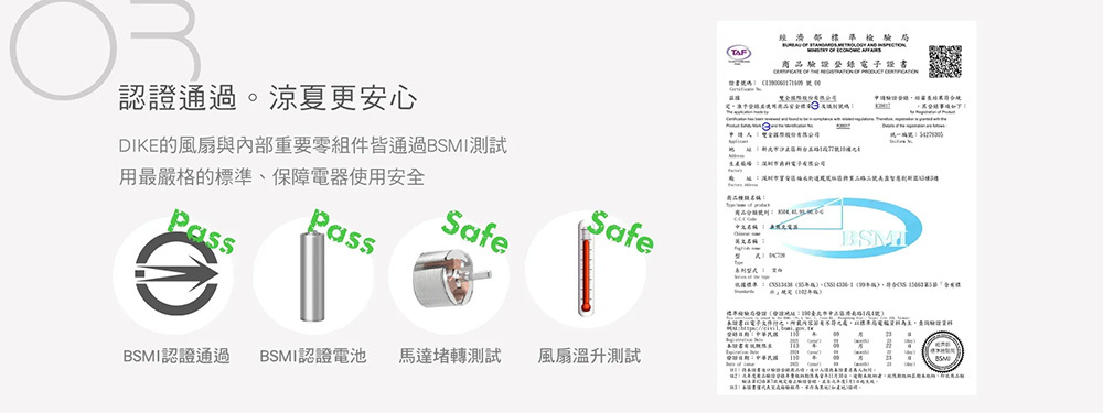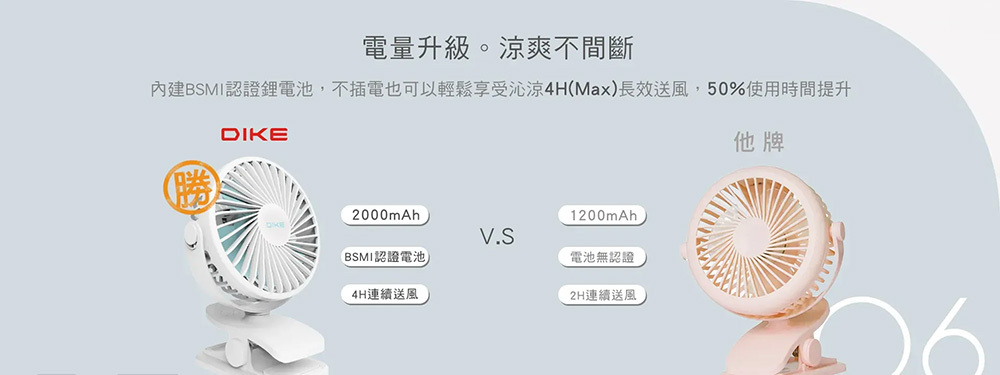 BSMI認證通過,多重安全防護,涼夏安心首選。省電靜音DC馬達,三段風速調整、40%風量提升。BSMI認證電池,安全大容量,50%使用時間提升。多功能雙用設計,滿足生活各種使用需求