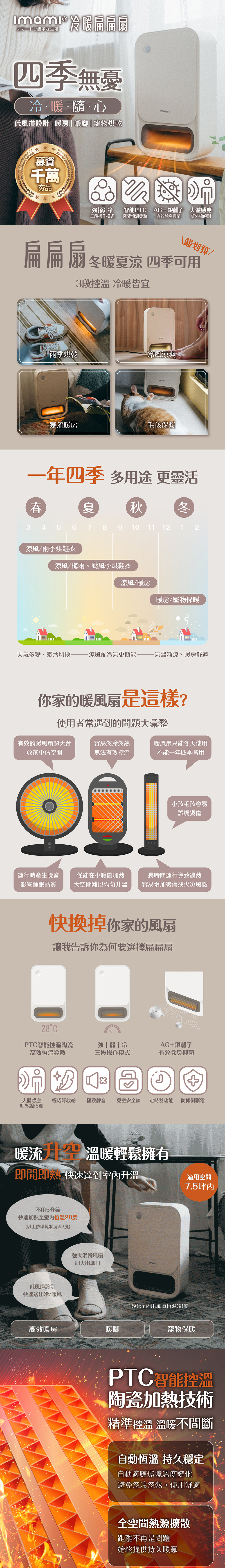 ● 智能PTC陶瓷高效恆溫,即開即熱, 28 °C精準控溫,5分鐘暖房有感