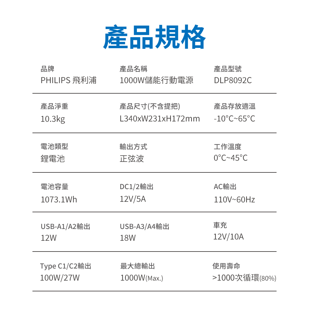 ● 1000W高容量