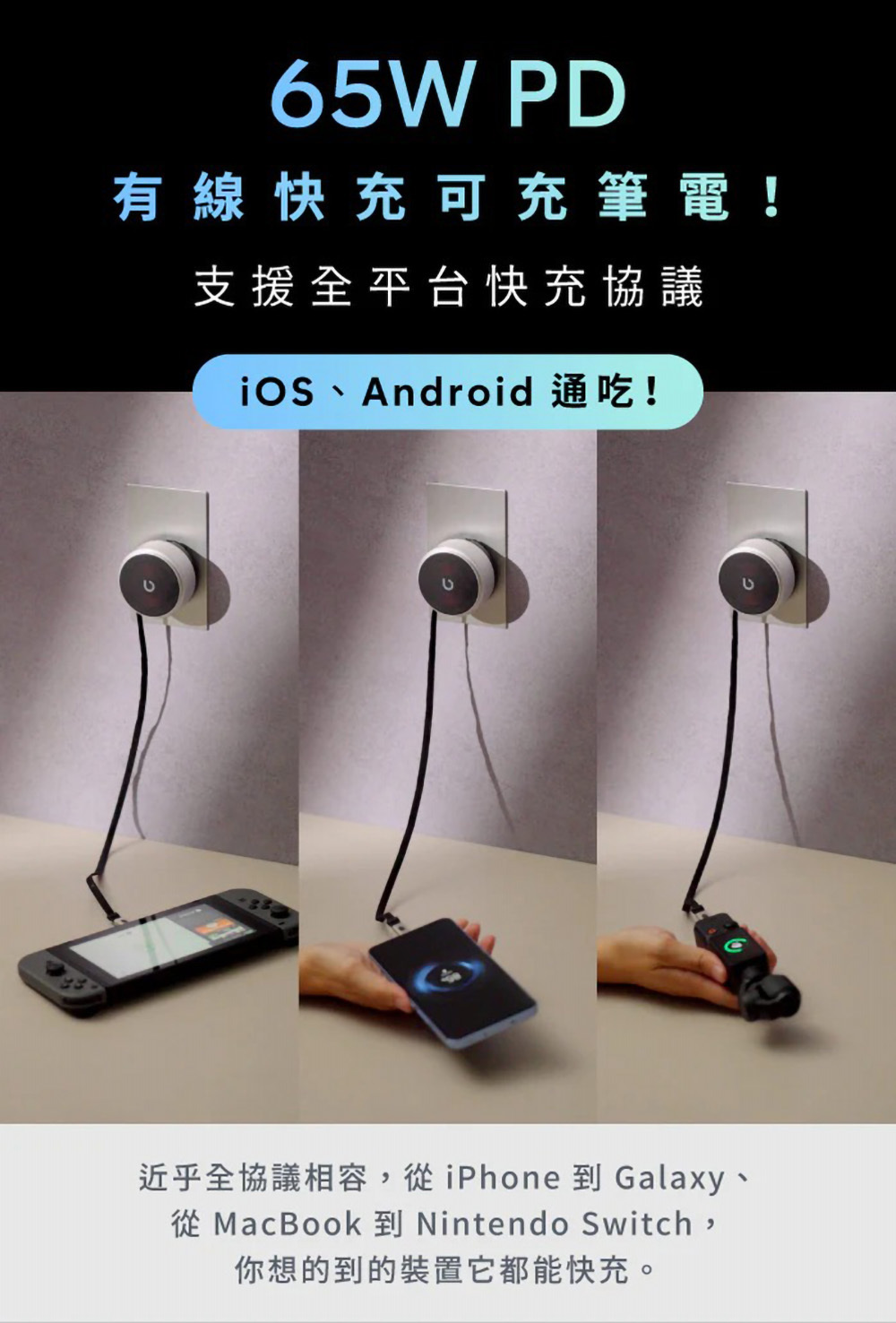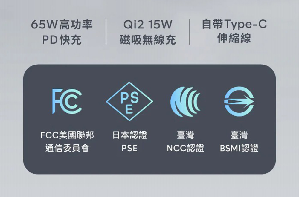 • 穩定電流、65W PD 快充、Qi2 15W 無線充電