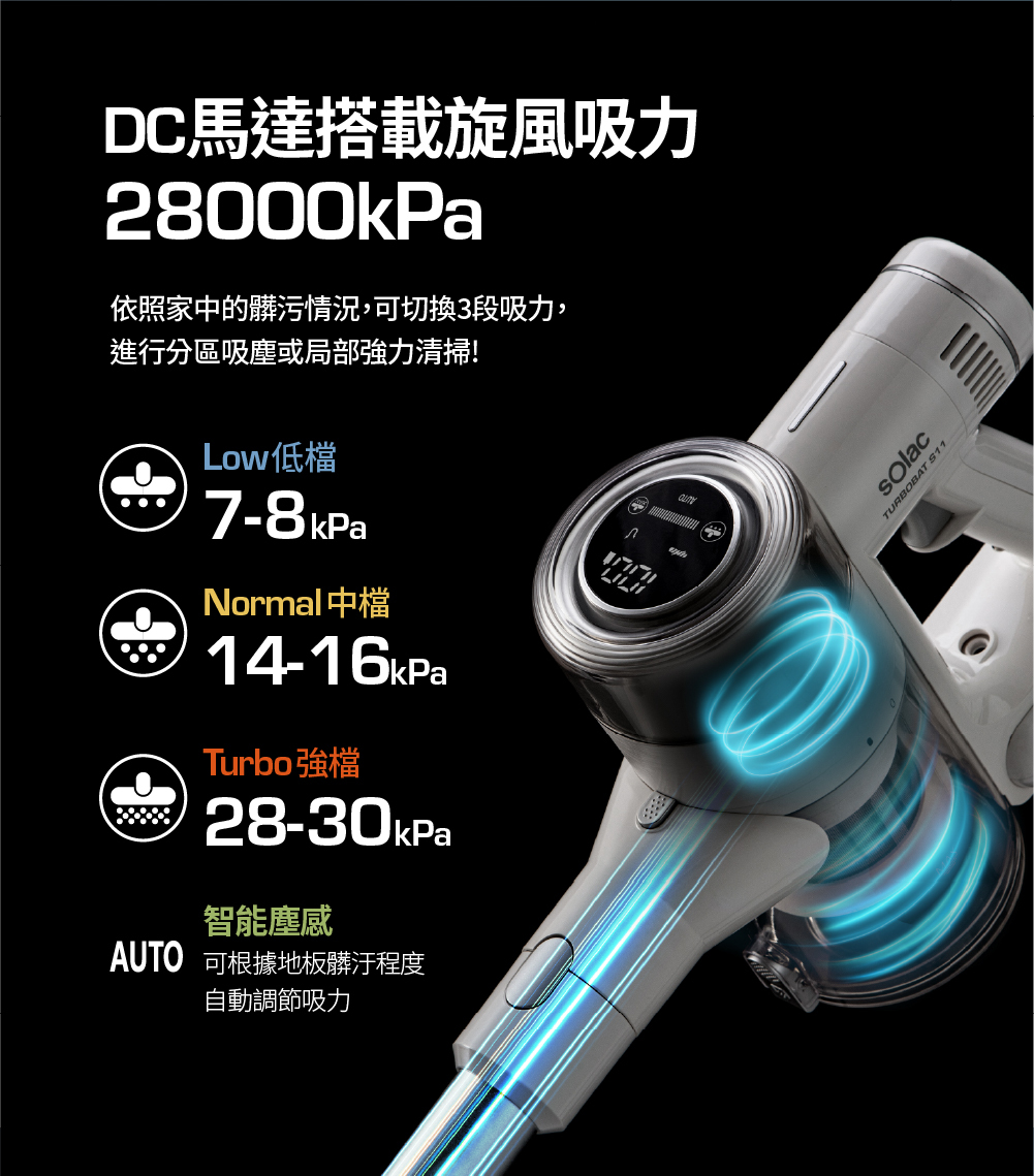 吸力:高檔28-30kPa / 中檔14-16kPa / 低檔7-8kPa