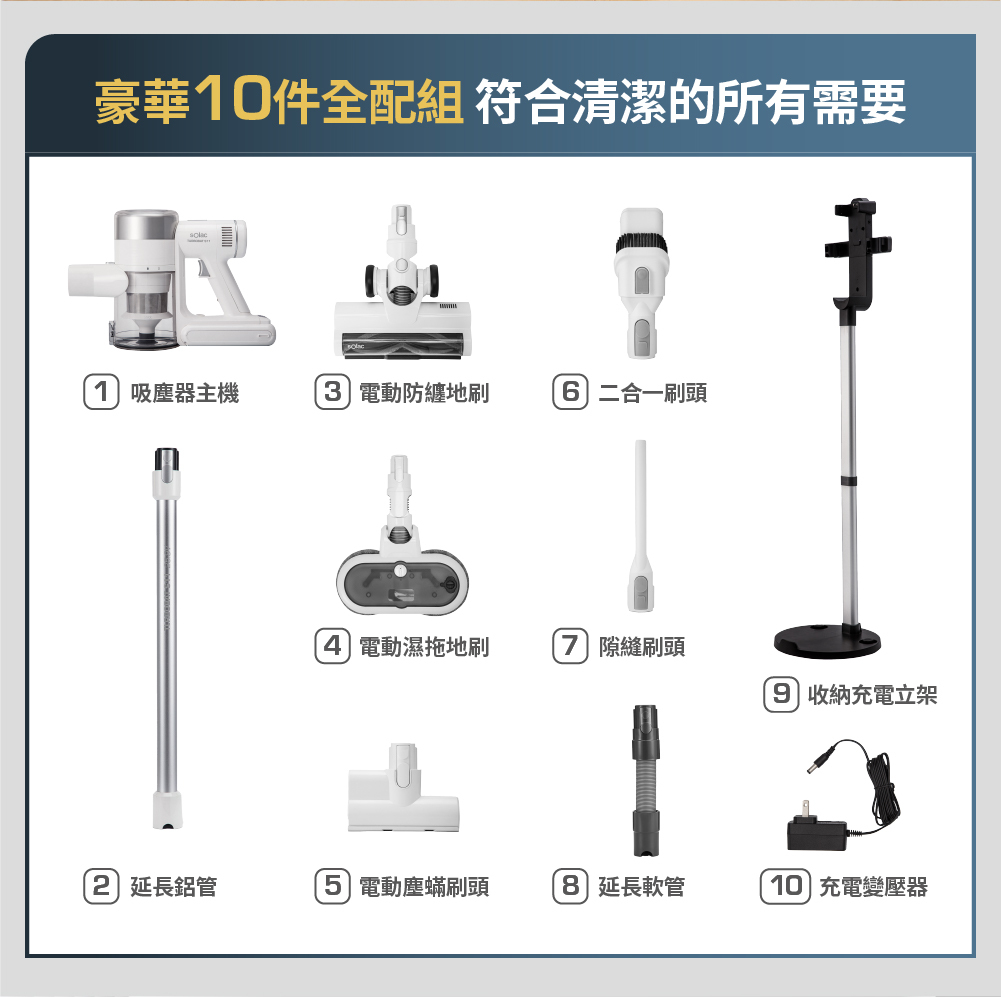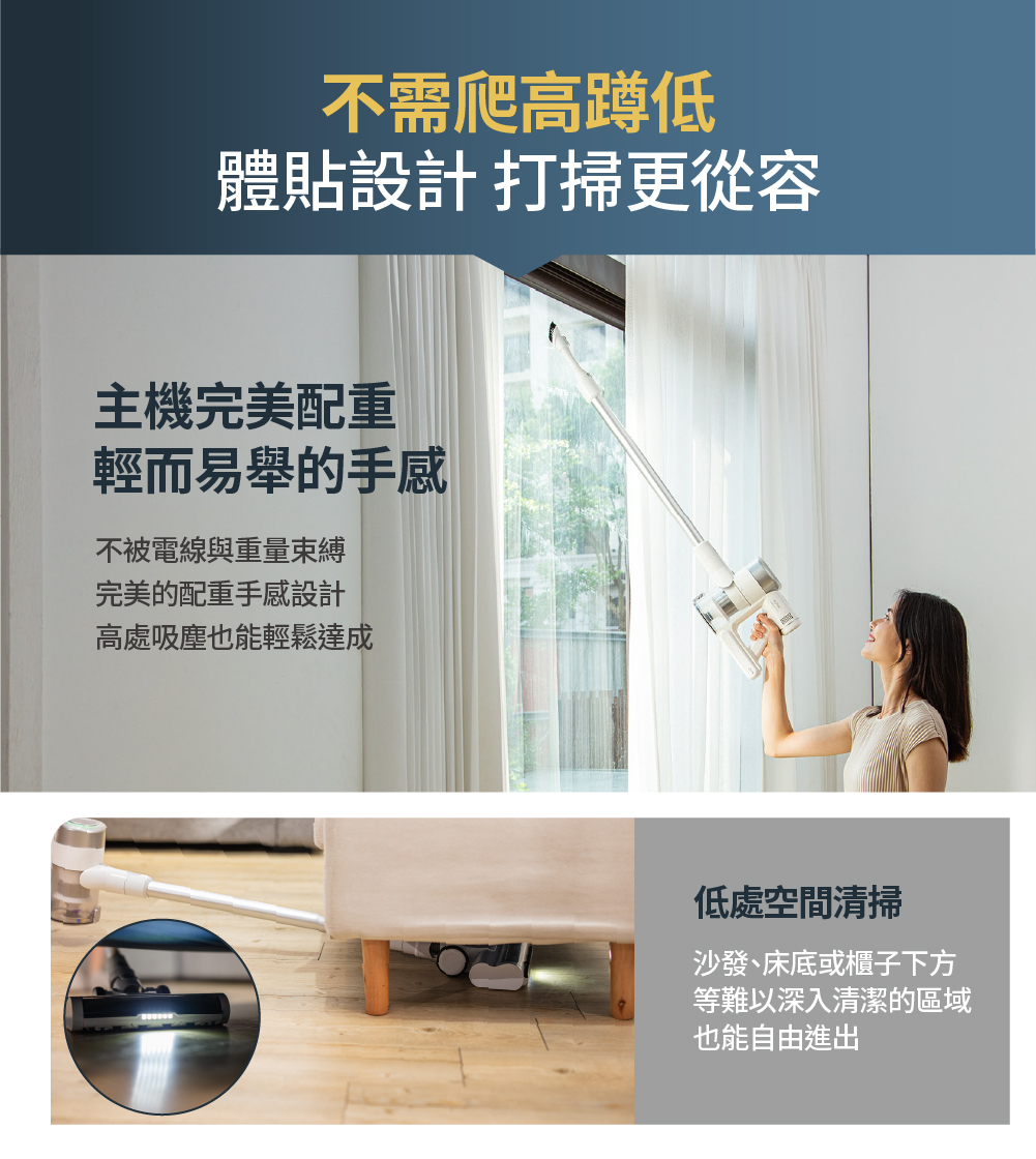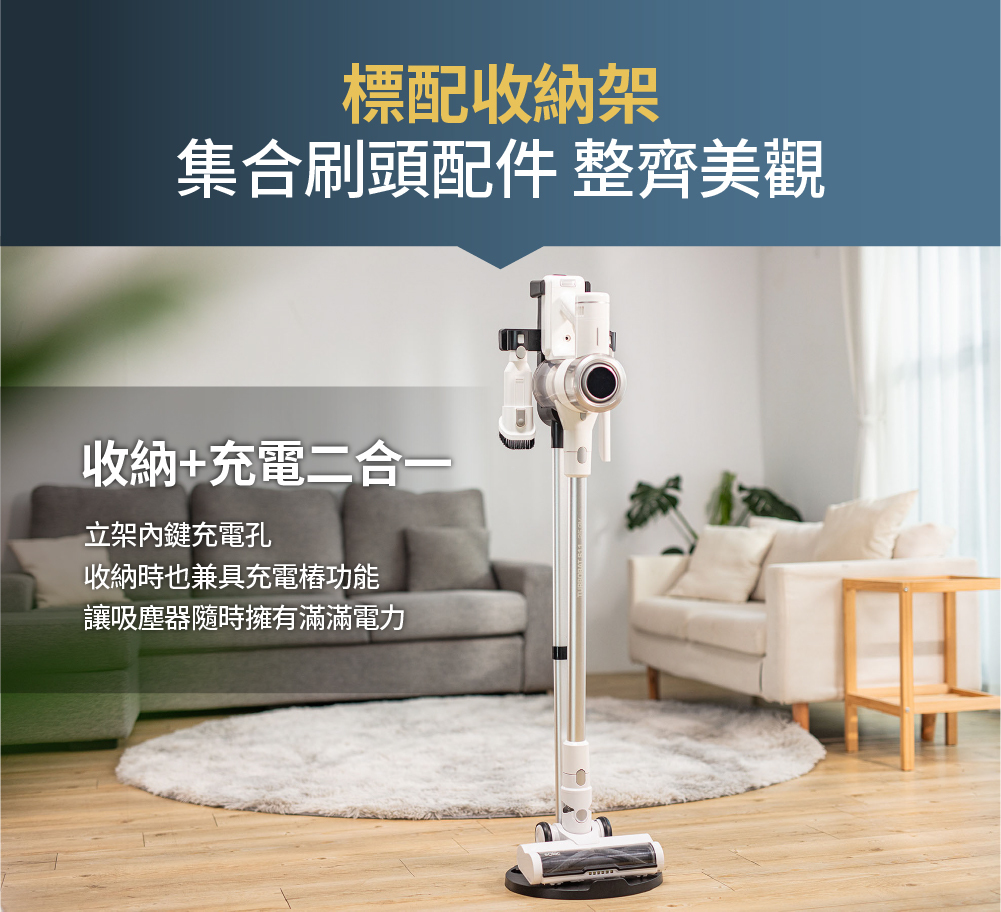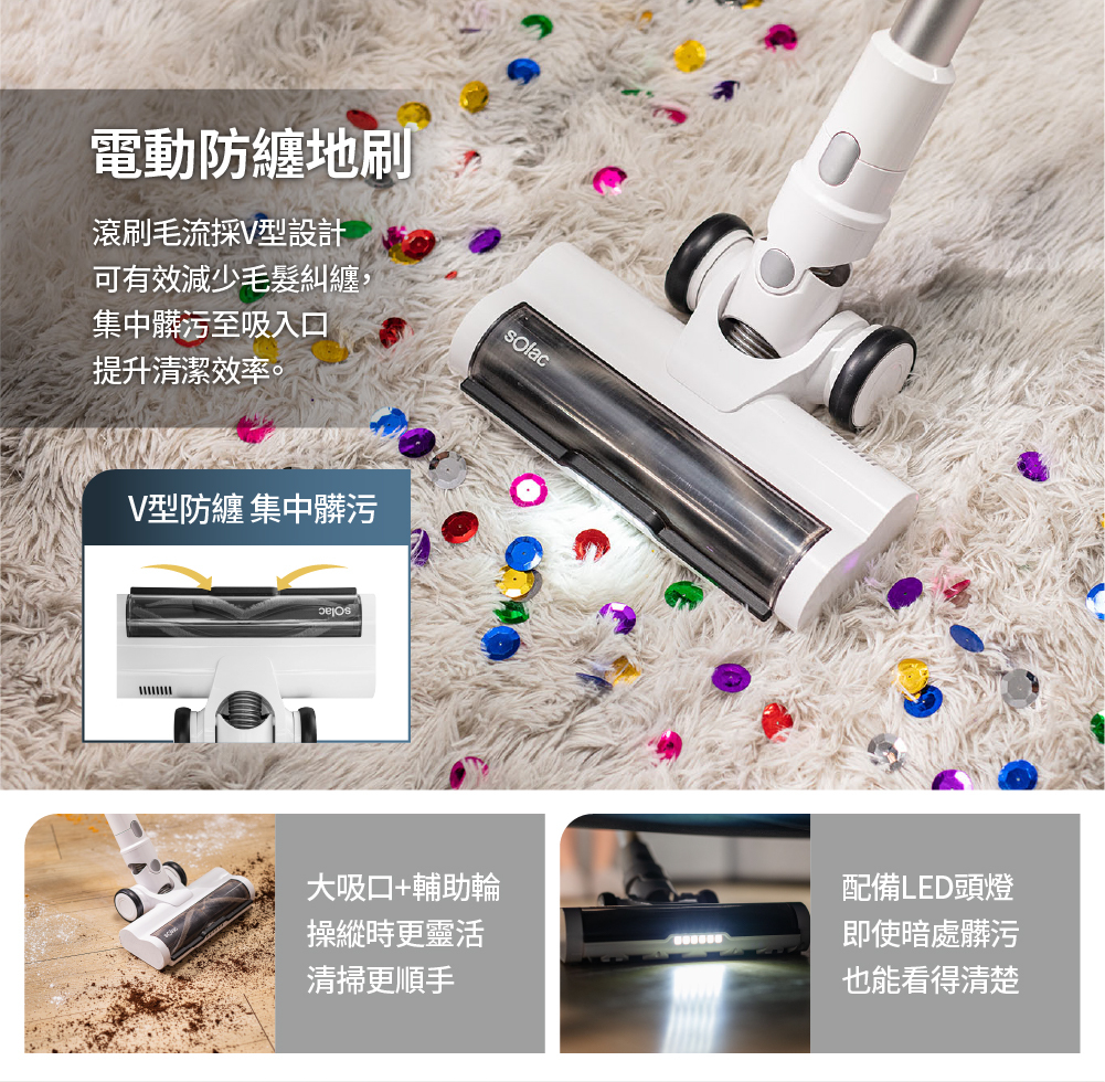 ●電動防纏地刷V型設計防纏集中髒污配備LED頭燈