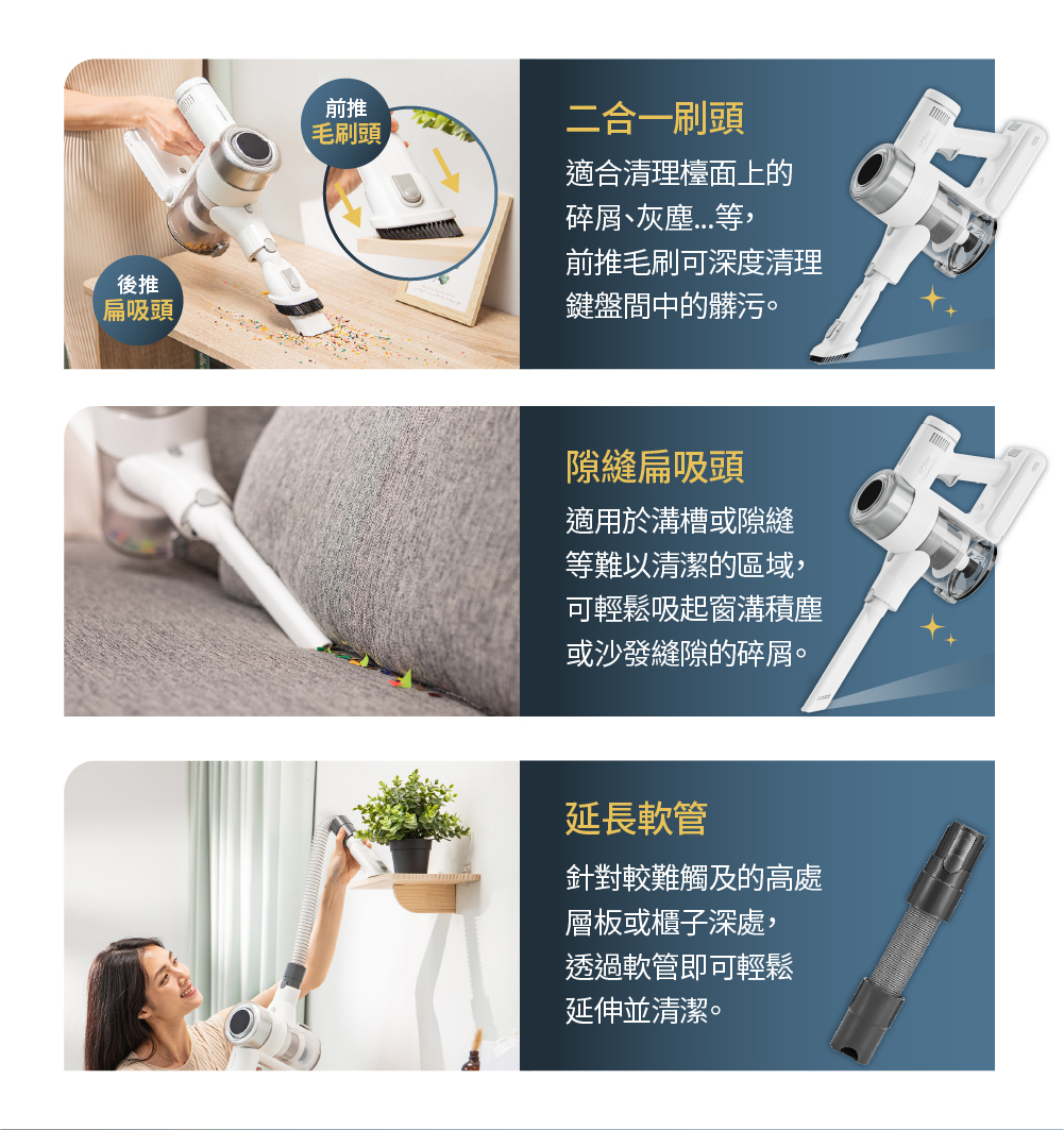 ●二合一刷頭/隙縫扁吸頭/延長軟管