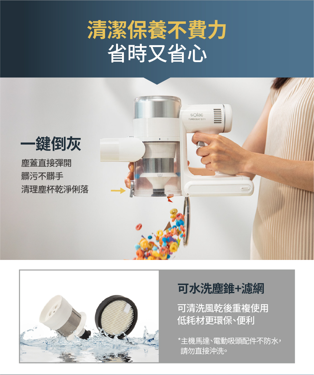 ●一鍵倒灰塵蓋彈開可水洗塵錐加濾網