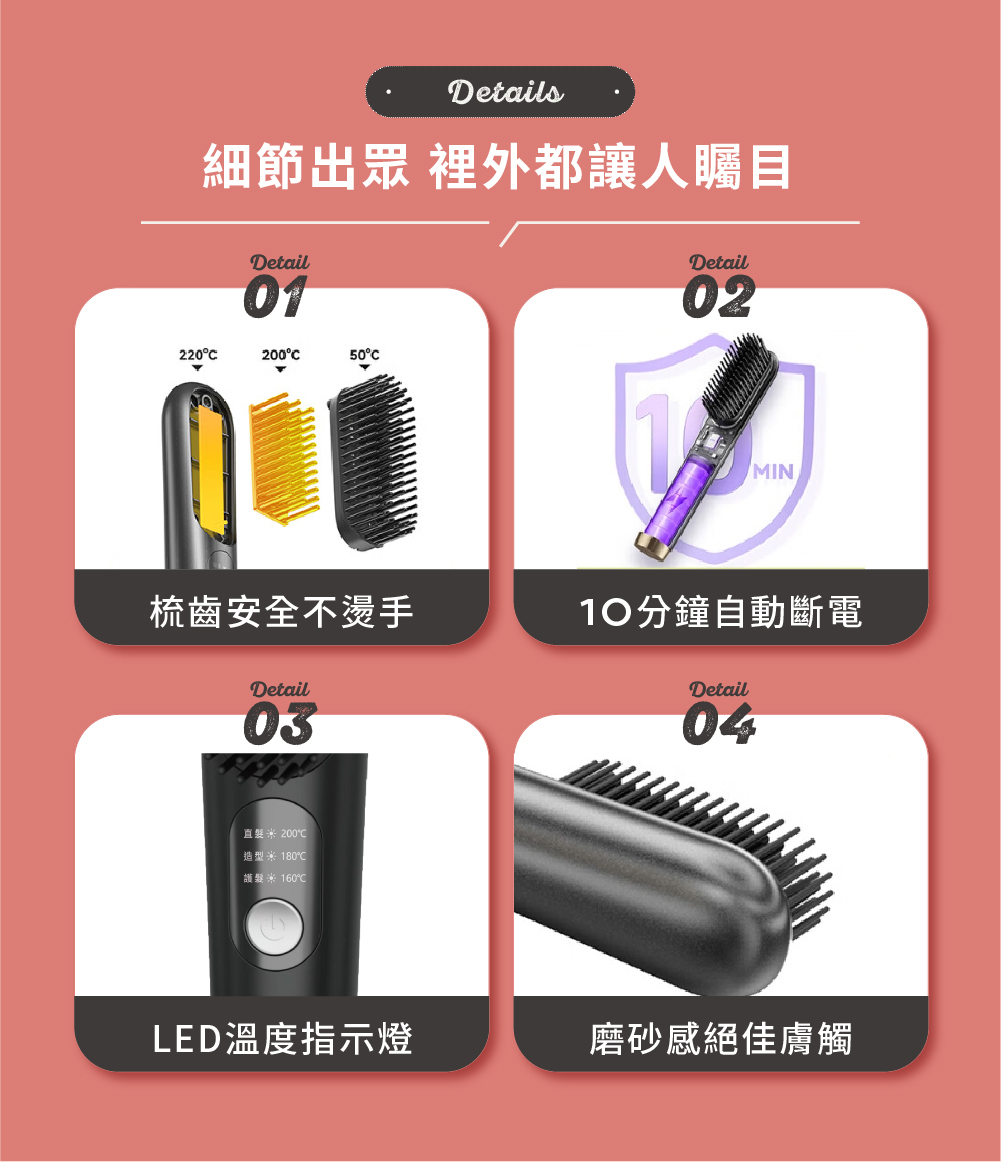 ● 梳齒上採用角蛋白塗層整髮同時護髮