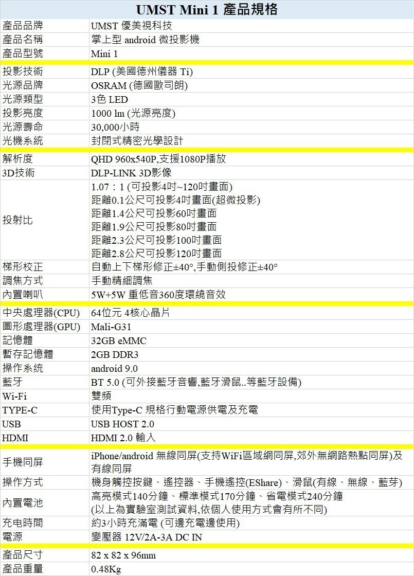 ●德國歐司朗OSRAM 3色 LED,投影亮度1000 lm (光源亮度)