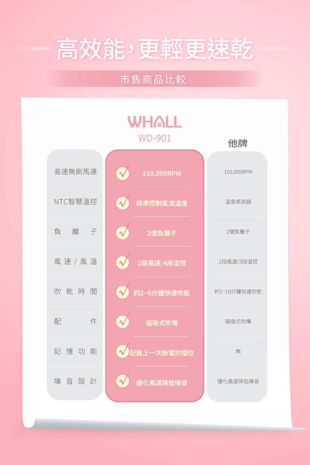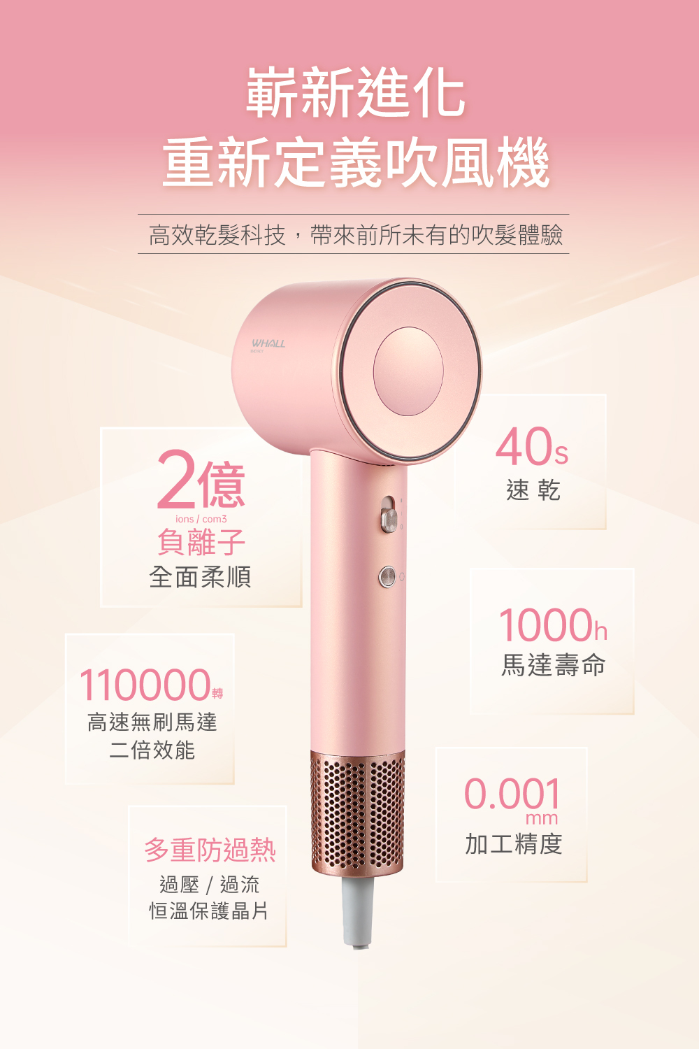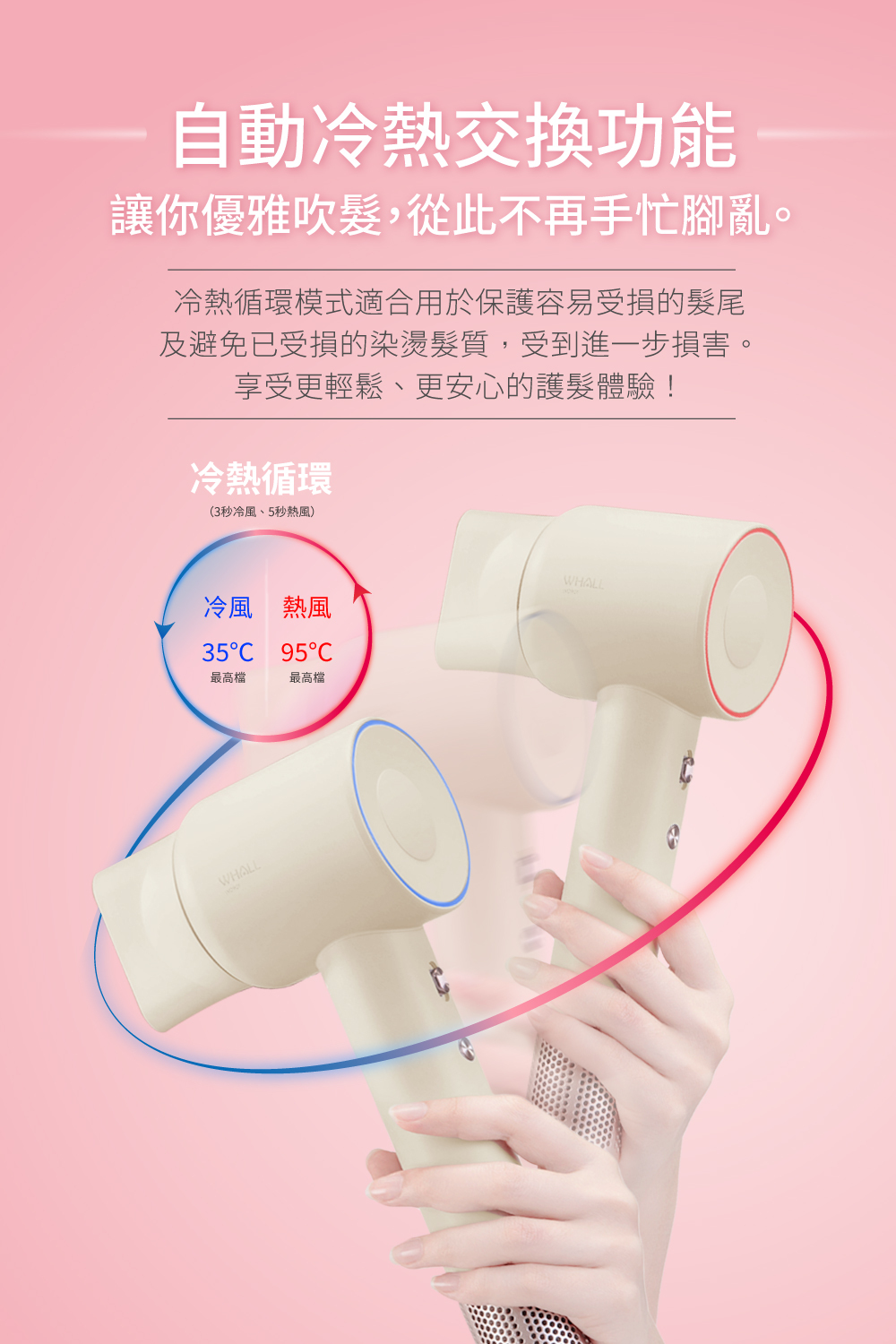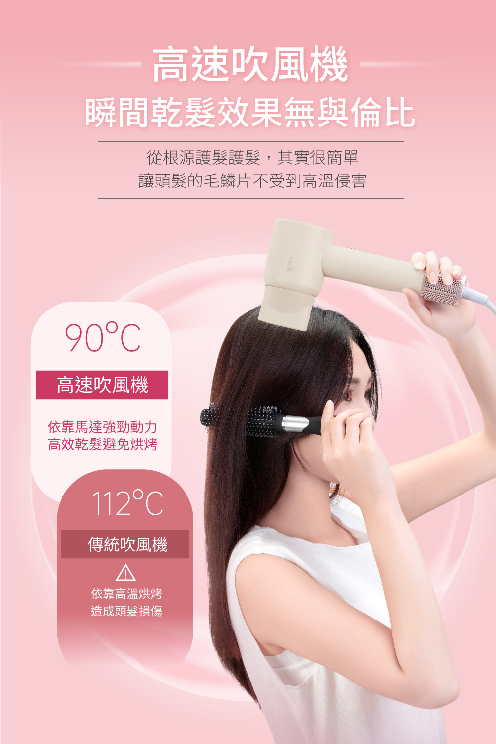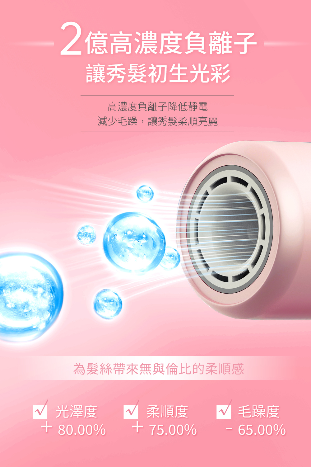 ● 高濃度負離子降低靜電減少毛躁